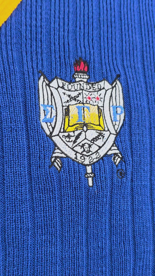 Embroidered Sigma Gamma Rho crest on the right front chest, approx. 4” in height